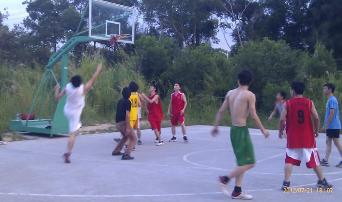 The mold department with LED basketball match at 5:30 on July 21, after both players are in place, a ready a long time ago, kicked off the basketball court in the Cang industrial park within.
